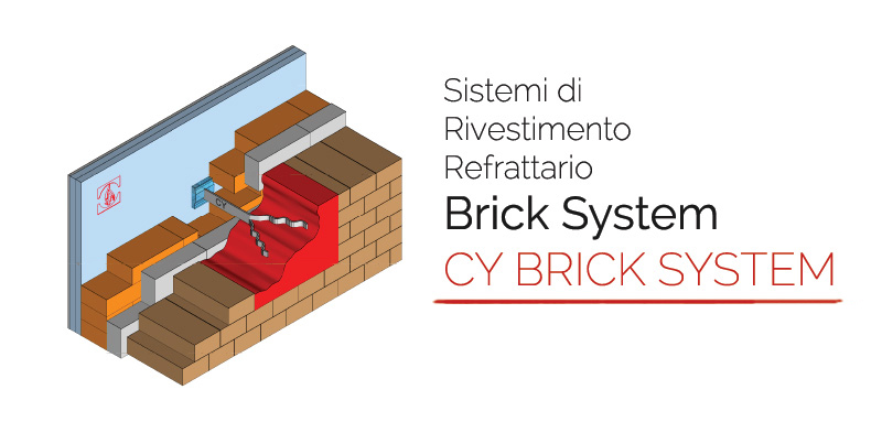 Muratura in multistrato con sistema di ancoraggio metallico ondulato, della serie CY200, che consente un adeguata presa di tenuta del refrattario interno.